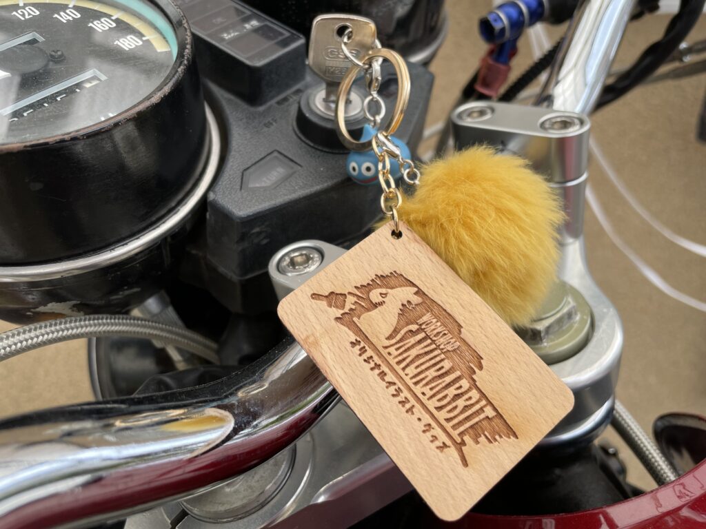 ただ自分はバイクの鍵に付けたいなっと思って製作しましたので木製のキーホルダーだと軽いのでキーシリンダーに負担がかかりにくいので木製にしました!